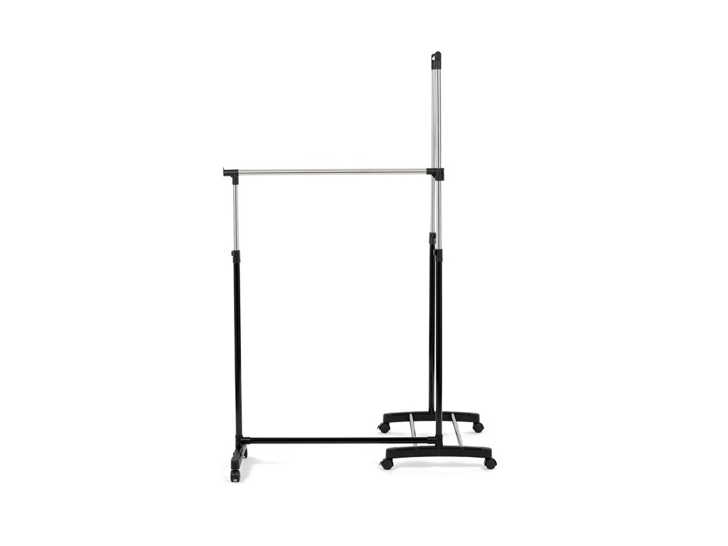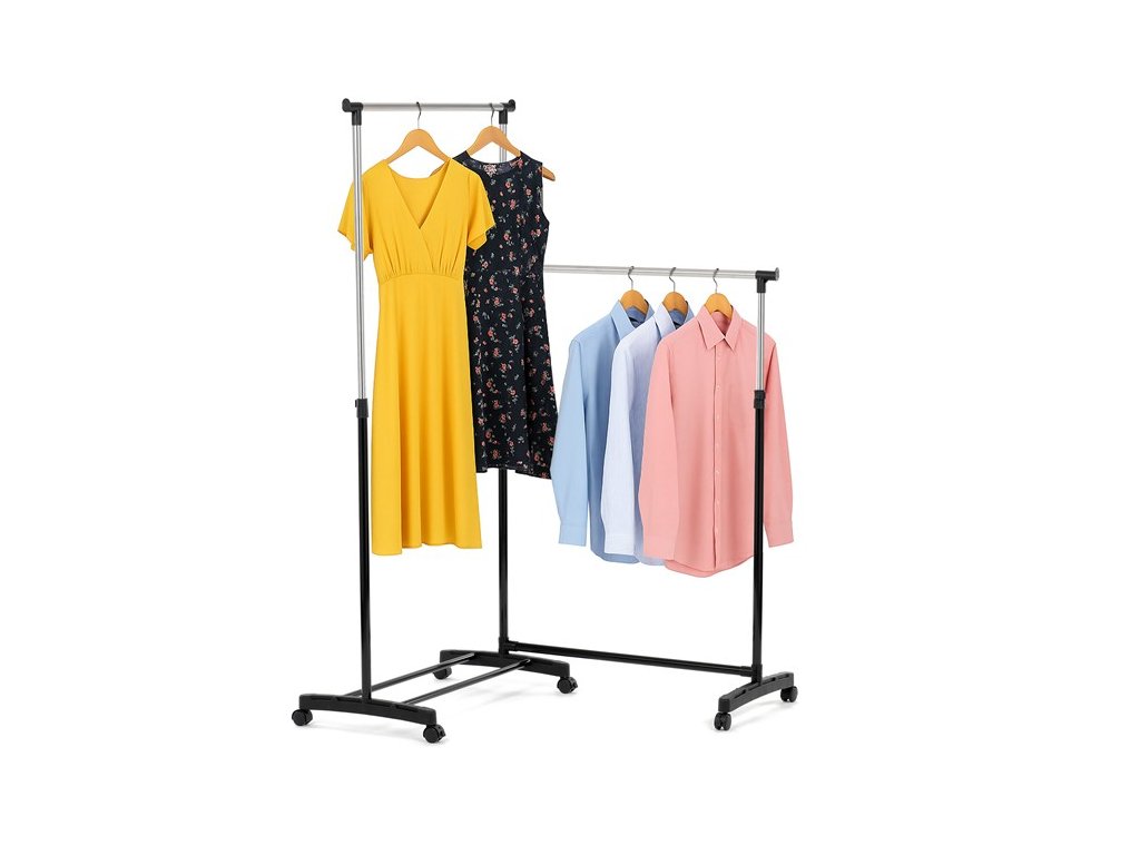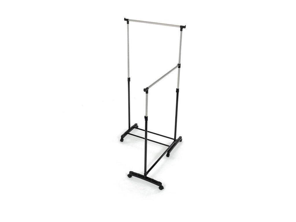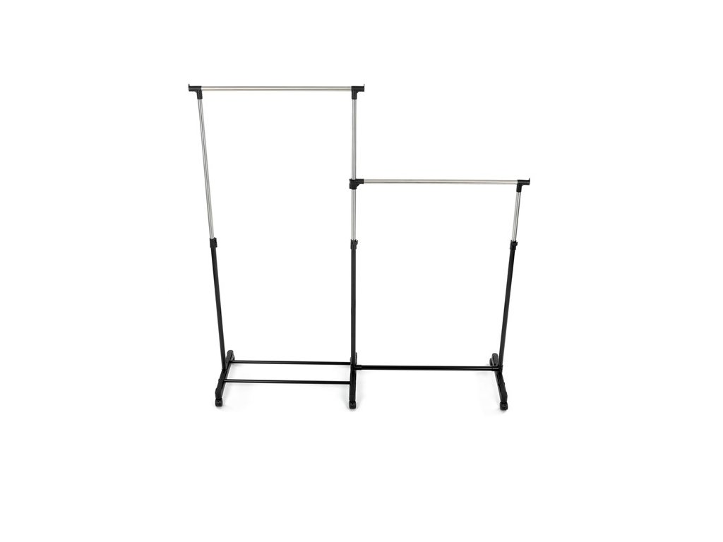 Dvojitý stojan na šaty GD-174 BK značky Autronic je ideálním řešením pro maximální využití úložného prostoru. Stabilní kovová konstrukce v kombinaci s kolečky umožňuje snadnou manipulaci a vysokou nosnost. Dvě prostorné tyče poskytují dostatek místa pro zavěšení oblečení, ideální pro šatny, ložnice či předsíně. Minimalistický design v černém provedení se snadno přizpůsobí jakémukoliv interiéru. Díky své praktičnosti a flexibilitě je tento stojan perfektní volbou pro každodenní použití i sezónní organizaci šatníku.
