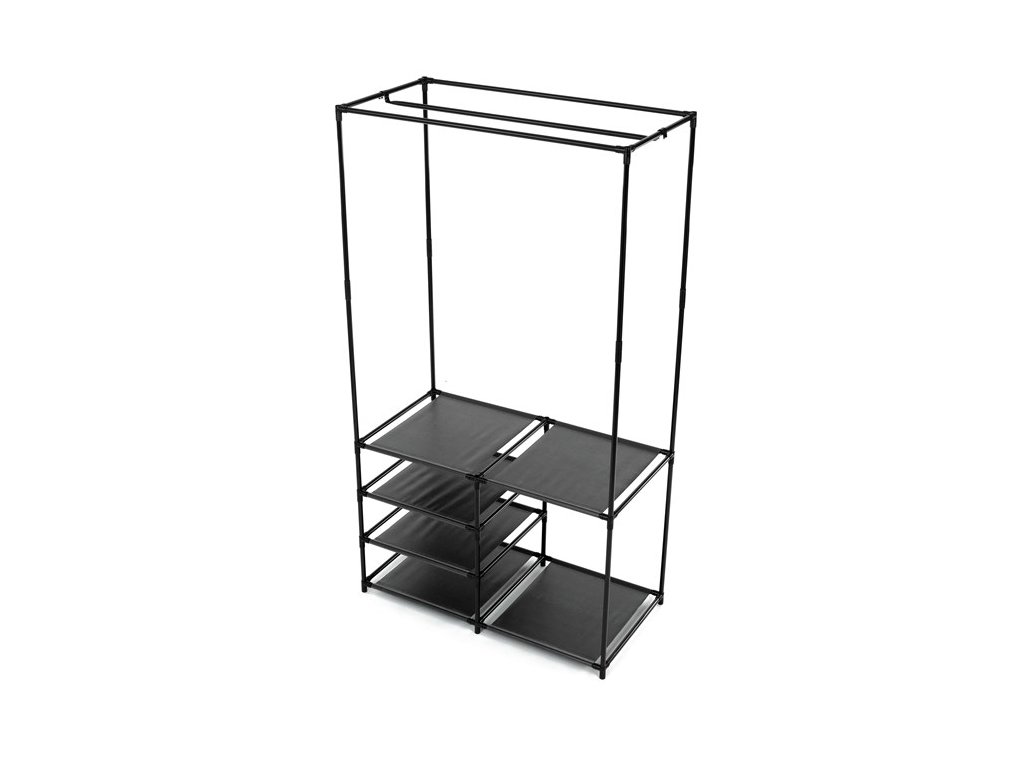 Moderní stojan na šaty GD-172 BK značky Autronic spojuje praktičnost s elegantním designem. Stabilní černá kovová konstrukce nabízí nejen prostor pro zavěšení oděvů, ale také čtyři police pro uložení krabic, bot nebo doplňků.