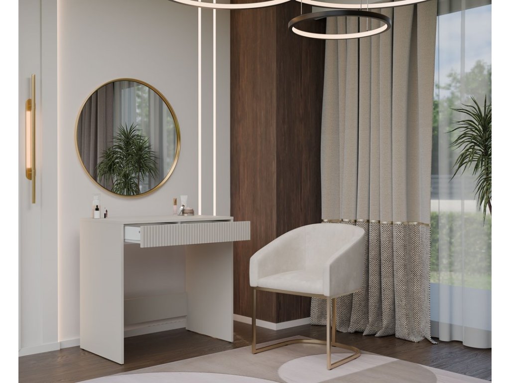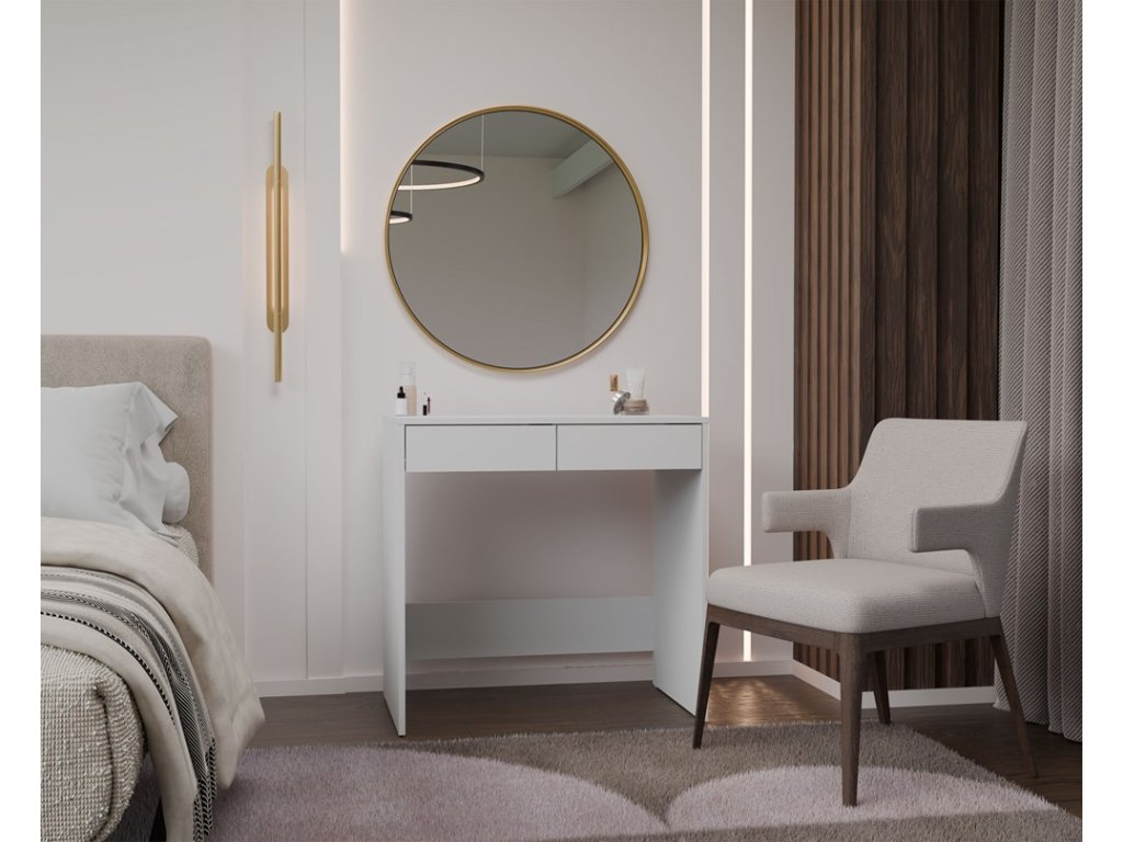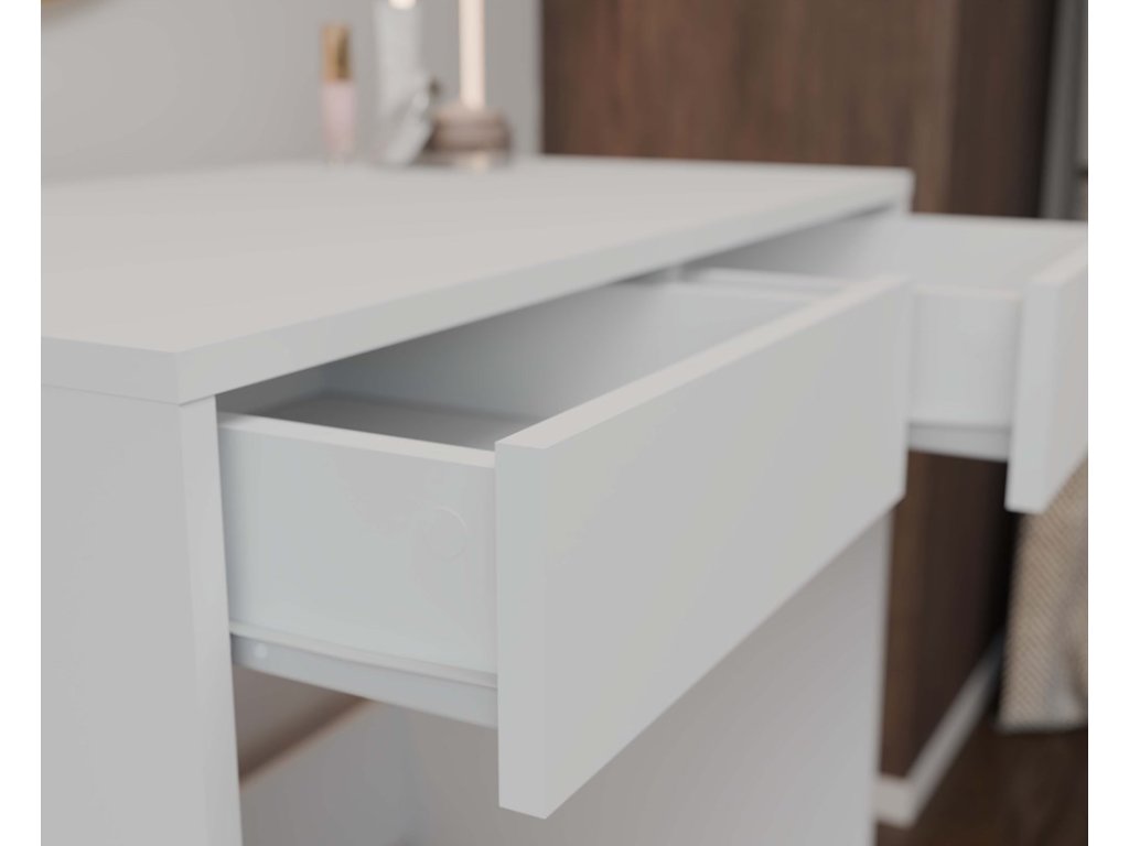 Nadčasový toaletní stolek Marissa je jedinečný kousek - dokonalé řešení pro ty, kteří hledají spojení funkčnosti a estetiky v každém detailu. Díky svým kompaktním rozměrům je ideální volbou i pro menší místnosti, skvěle se hodí do ložnice, pracovny nebo studentského pokoje. Elegantní bezúchytková čela zásuvek zajistí pohodlné používání a dodají moderní vzhled. Nábytek je vyroben z kvalitního lamina, které je snadno udržovatelné a odolné proti oděru.