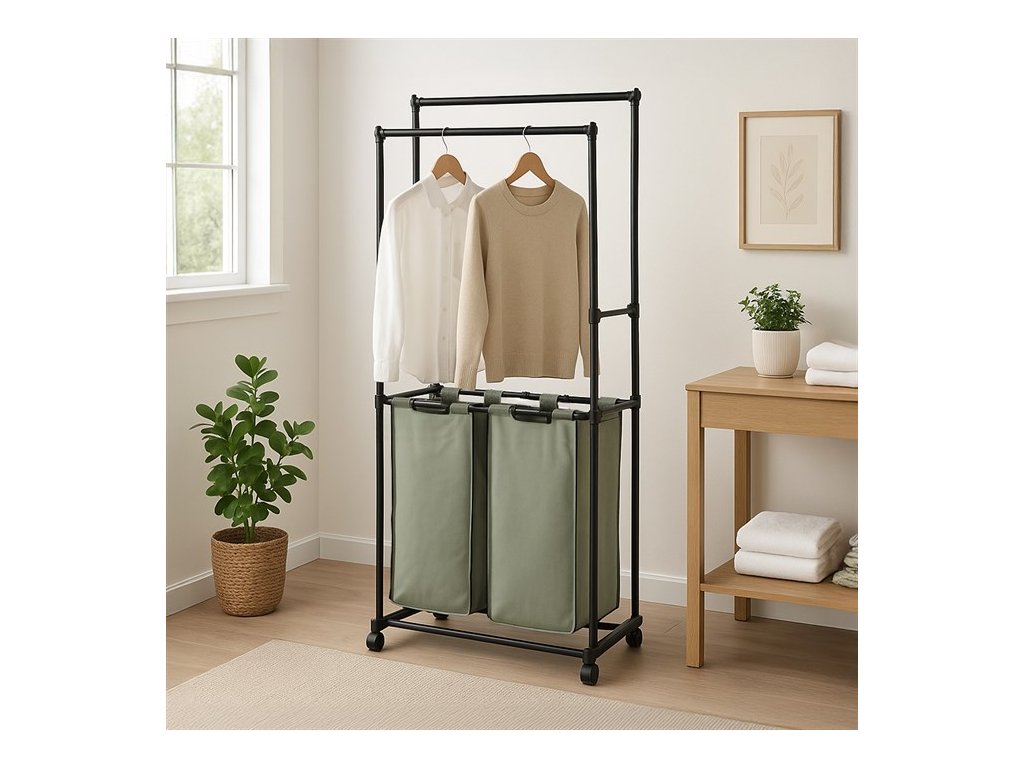 Víceúčelový věšák GD-176 BK značky Autronic je praktickým řešením pro organizaci oblečení i prádla. Stabilní černá konstrukce s dvěma tyčemi na zavěšení oblečení je doplněna o prostorný koš na prádlo, který nabízí další úložný prostor.