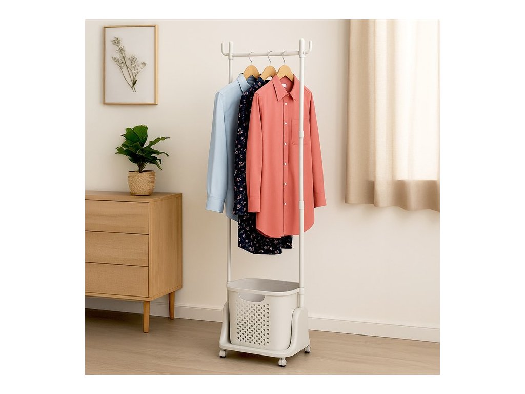 Praktický věšák na šaty GD-186 BGE s košem na prádlo značky Autronic je dokonalým spojením funkčnosti a elegance. Bílá konstrukce z kvalitního plastu je lehká, stabilní a snadno udržovatelná. Horní část nabízí dostatek prostoru pro zavěšení oblečení, zatímco spodní integrovaný koš na prádlo slouží jako praktický úložný prostor. Díky kolečkům je věšák snadno přemístitelný a hodí se do předsíně, ložnice nebo koupelny. Minimalistický design v bílém provedení zapadne do každého interiéru a usnadní organizaci vašeho domova.