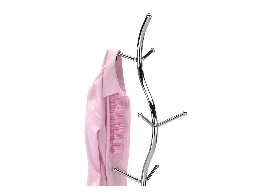 Závěsné háčky jsou umístěny ve třech výškových úrovních a zakončeny kulatými plastovými záslepkami v chromovém provedení. Nosnost věšáku je 10 kg rovnoměrně rozložené zátěže. Díky lehkosti a konstrukci je snadno přenosný. Tento věšák je originálním doplňkem každého interiéru, který si najde své zasloužené a funkční místo.