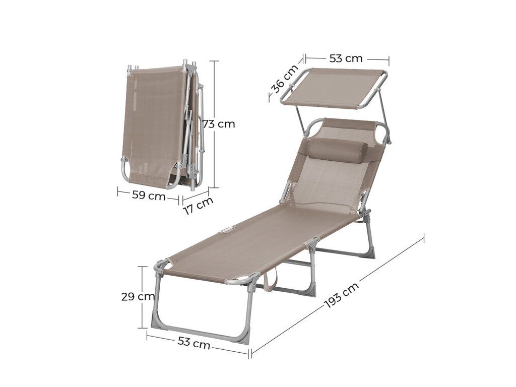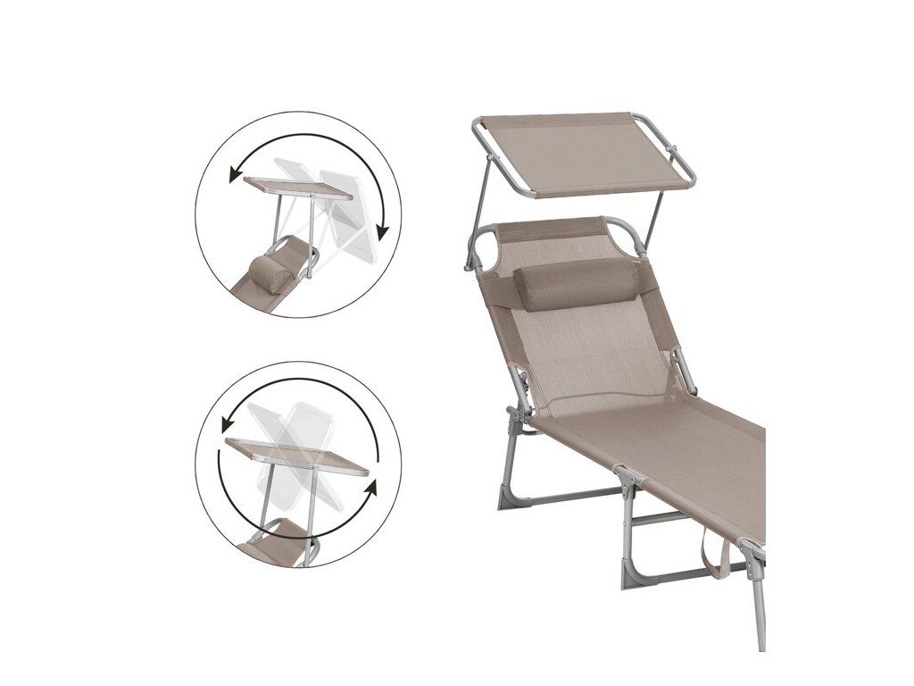 Lehátko je vybaveno polohovatelnou opěrkou zad, která umožňuje nastavit ideální pozici pro slunění i relaxaci s knihou. Praktická stříška chrání před přímým sluncem a zvyšuje komfort během horkých dnů. Díky modernímu designu a funkčnímu provedení představuje lehátko stylový doplněk pro každý venkovní prostor.