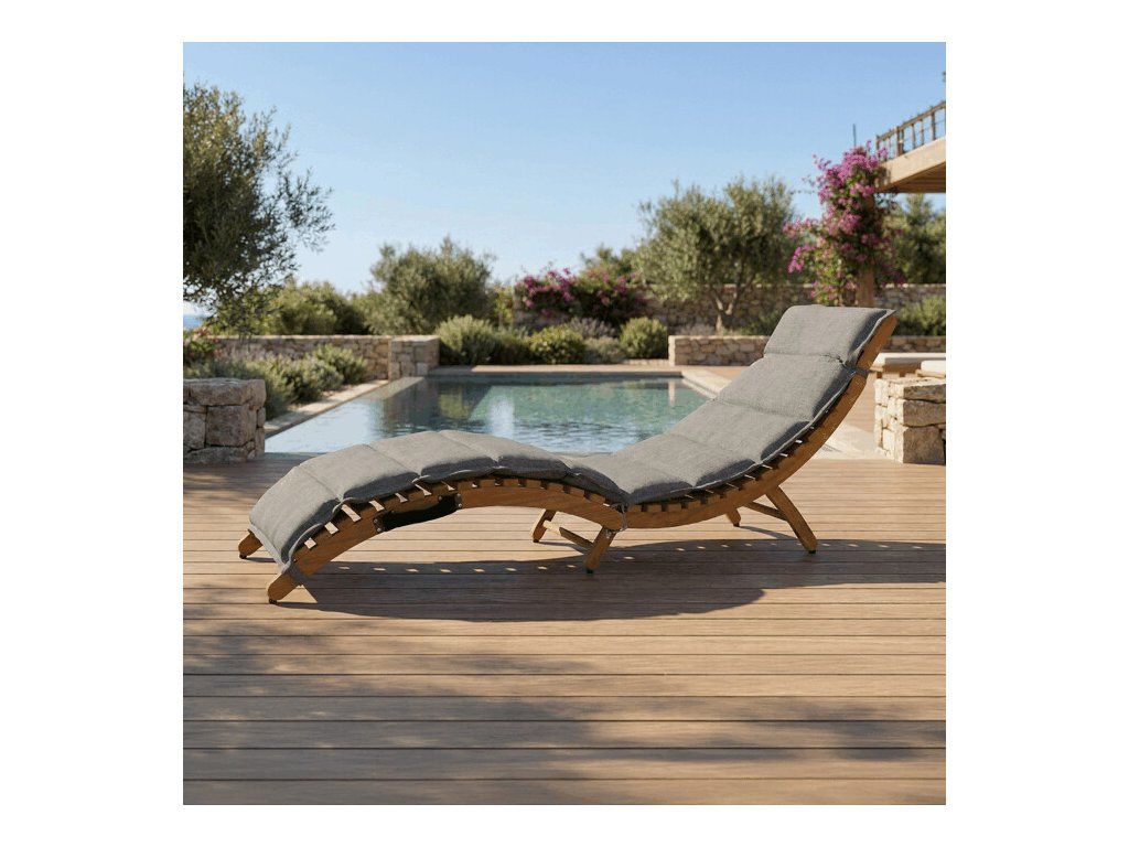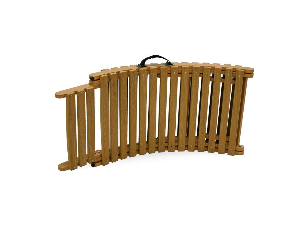 Lehátko je skládací, což usnadňuje manipulaci i skladování. Praktické madlo umožňuje snadné přenášení, zatímco stabilní konstrukce zaručuje bezpečné používání na zahradě, terase i u bazénu.