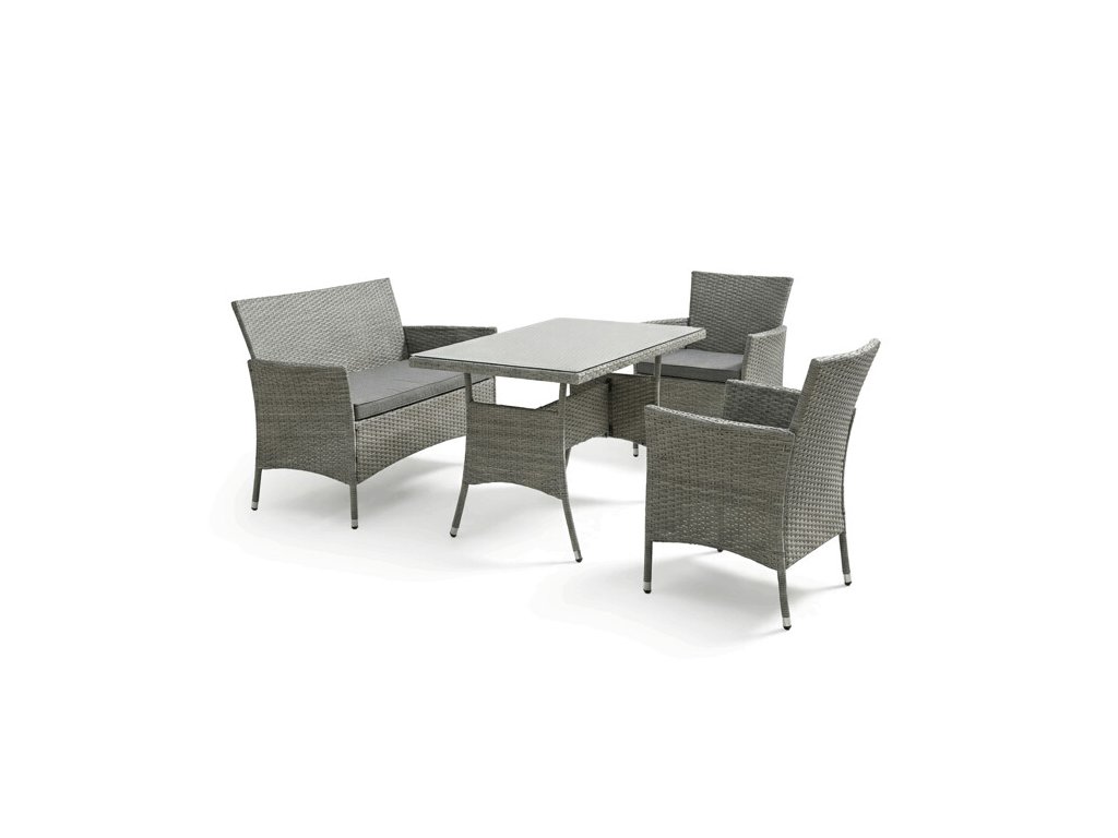 Zahradní sestava AZS-A1442 GREY s jídelním stolem je vyrobena z odolného polyratanu v šedém odstínu, který věrně imituje přírodní ratan a je vhodný pro venkovní použití. Pevná kovová konstrukce zajišťuje stabilitu a dlouhou životnost celé sestavy.