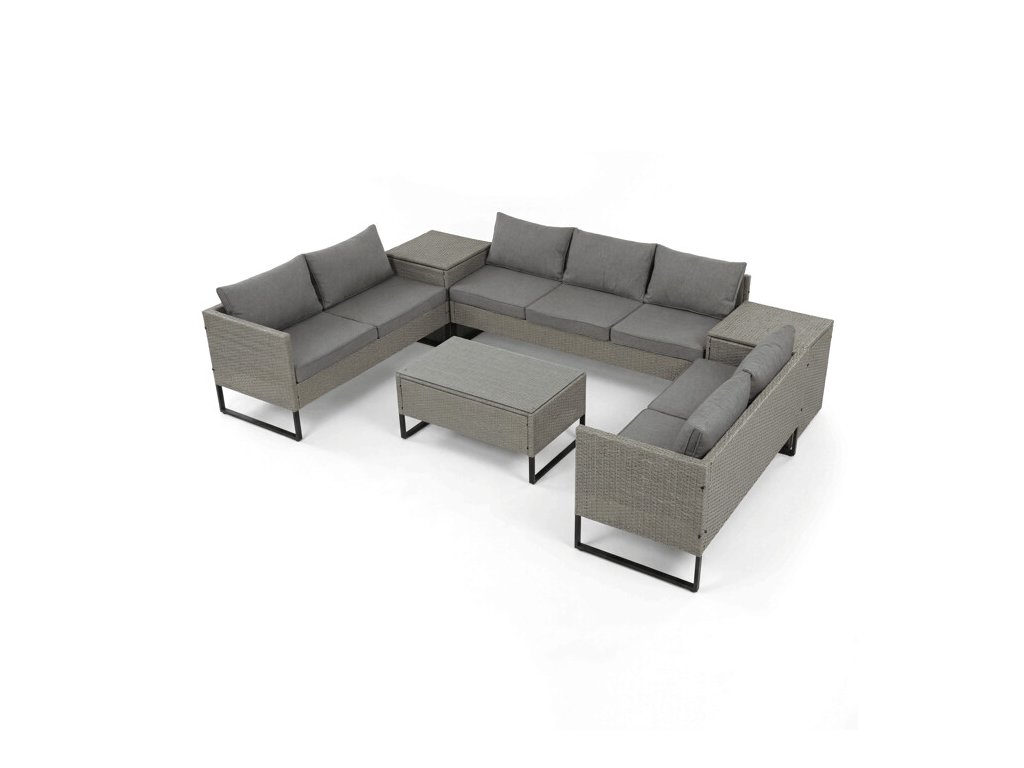 Velkou výhodou sestavy je integrovaný úložný prostor, který umožňuje uložení polštářů, dek nebo drobných doplňků a pomáhá udržet pořádek na terase či zahradě. Díky promyšlenému provedení a modernímu designu je sestava ideální pro relaxaci i společenské posezení.