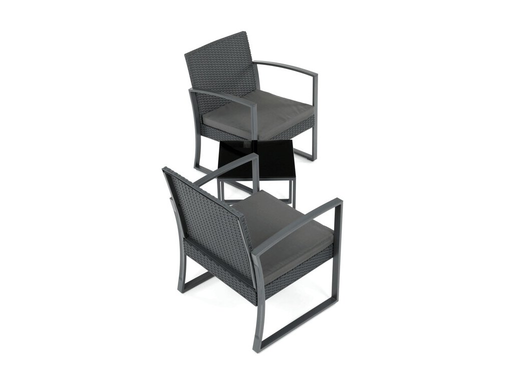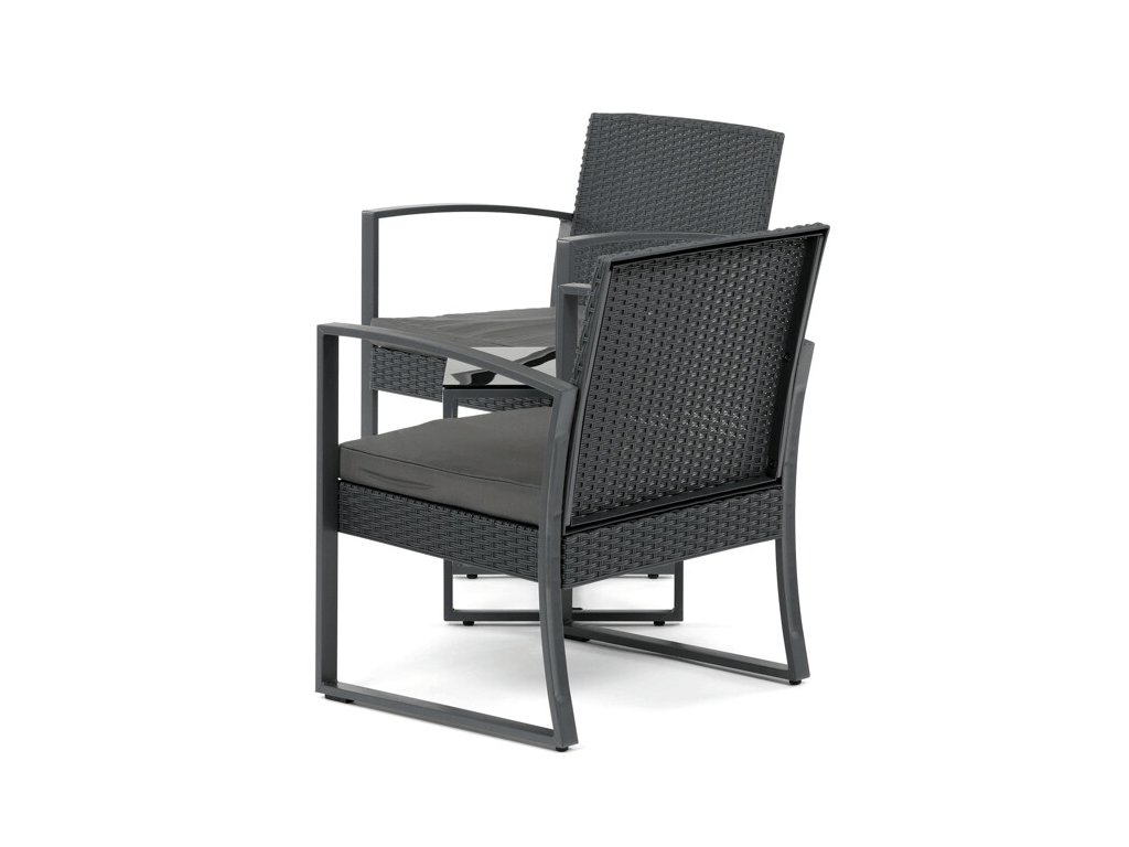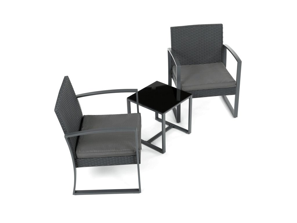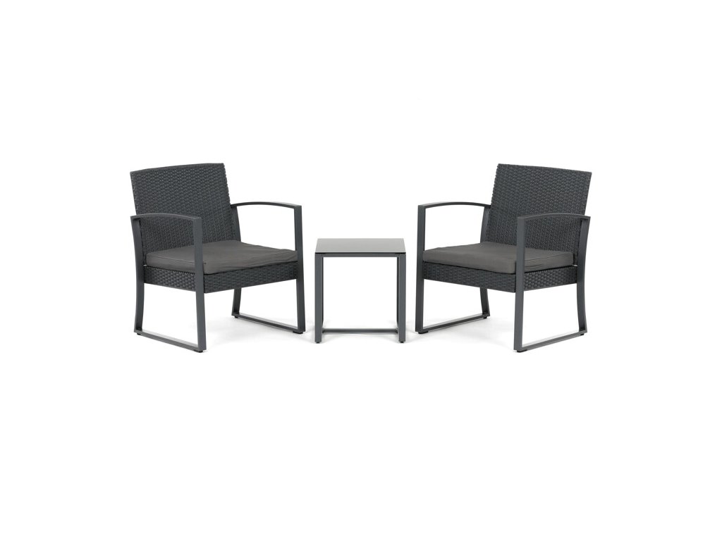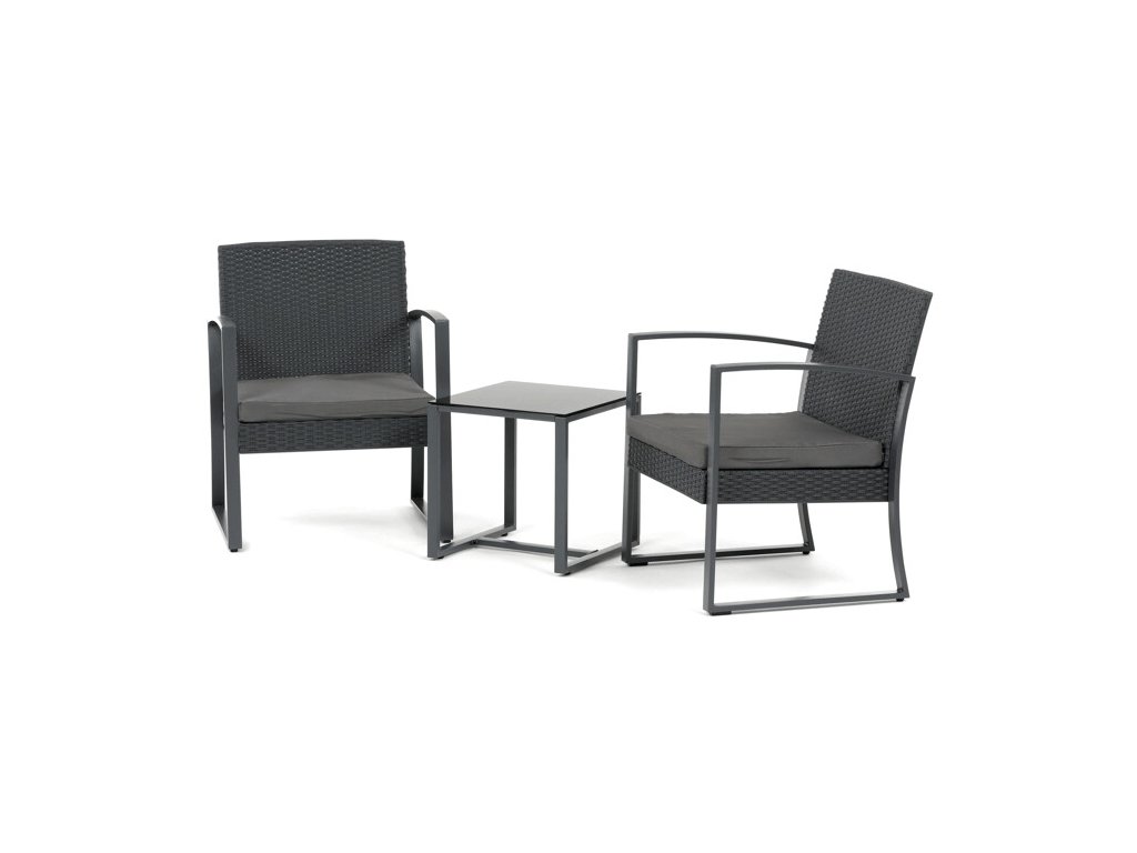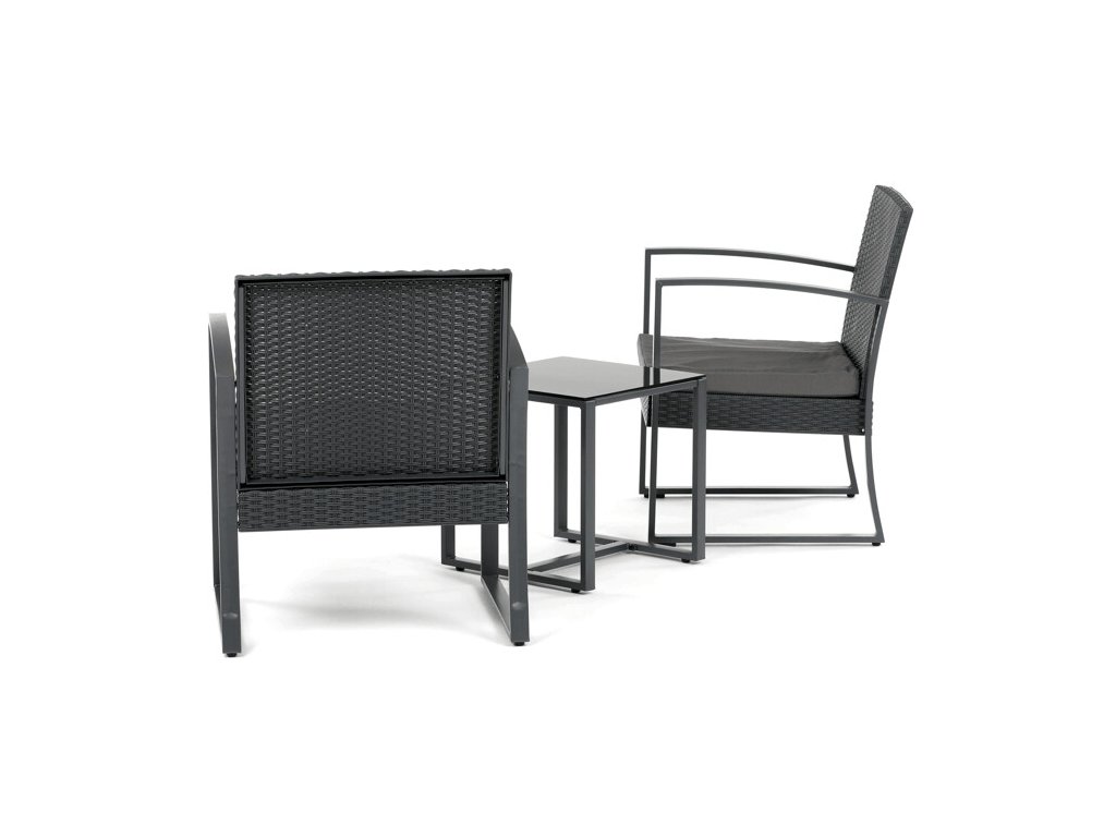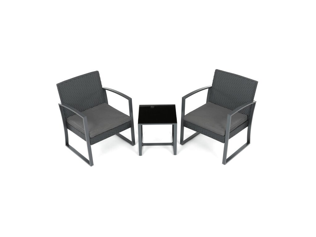 Díky kompaktním rozměrům je sestava ideální na balkóny, terasy i menší zahrady, kde nabídne stylové a pohodlné posezení pro dvě osoby.