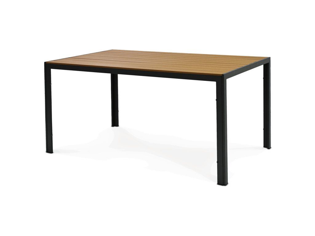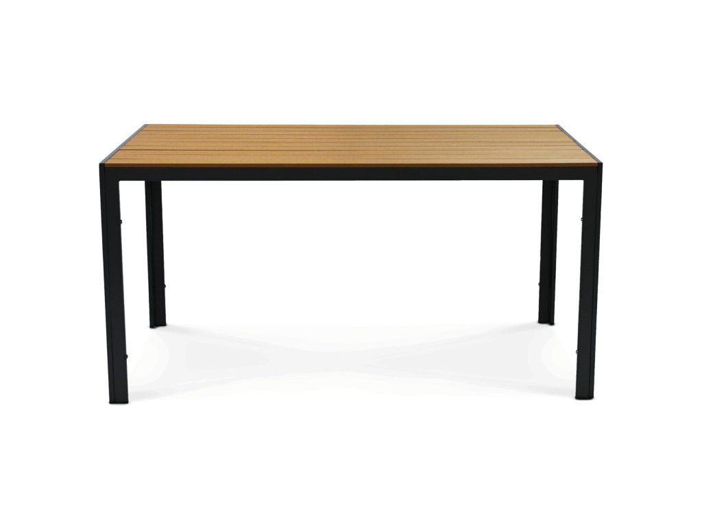 Polywoodová deska vyniká vysokou odolností vůči povětrnostním vlivům, vlhkosti i běžnému opotřebení, což zajišťuje spolehlivé využití při venkovním stolování. Robustní kovové nohy poskytují stabilní oporu a díky povrchové úpravě jsou chráněny proti korozi.