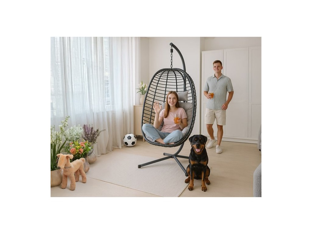Je ideální pro zahrady, terasy nebo balkony, kde vytvoří příjemné místo k relaxaci. Závěsné křeslo má vysokou nosnost do 150 kg. Design a kvalita, která zapadne do každého moderního venkovního prostoru.