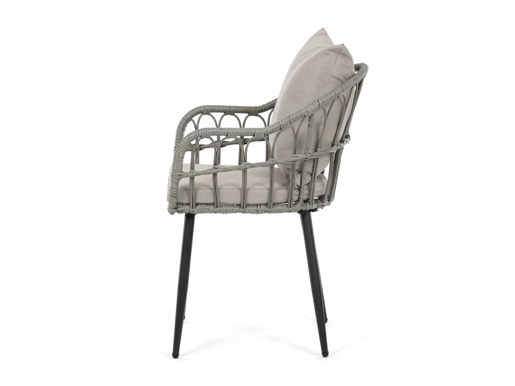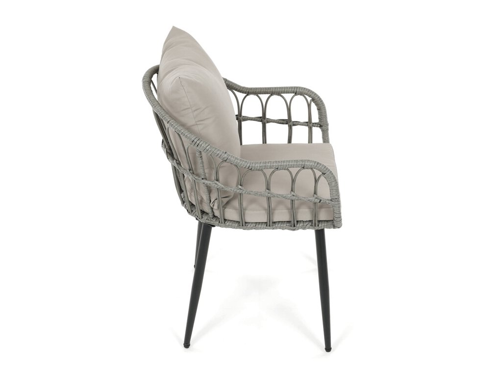 Sedák i opěradlo jsou doplněny polstrováním potaženým voděodolnou látkou, která poskytuje pohodlí při sezení a zároveň odolává běžným povětrnostním vlivům. Ergonomické tvarování přispívá k příjemnému posezení na terase, zahradě i balkóně.