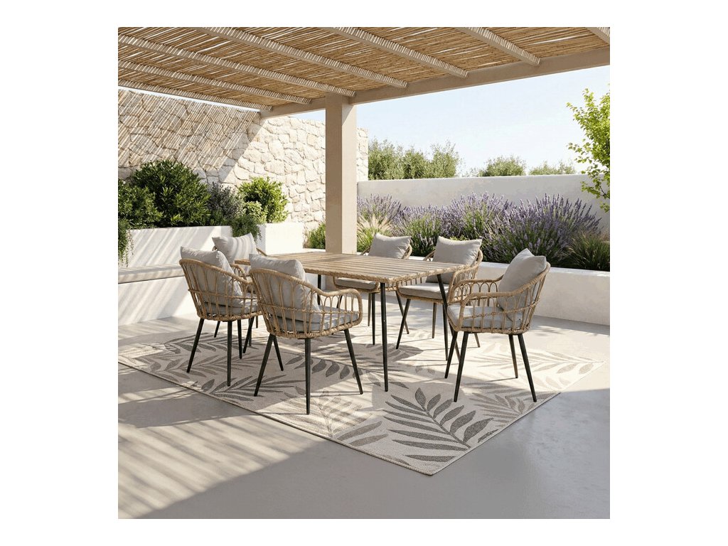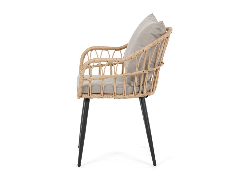 Stabilitu zajišťuje pevná kovová konstrukce, díky které je židle vhodná pro pravidelné používání na terase, zahradě i balkóně. Ergonomicky tvarovaný sedák a opěradlo poskytují pohodlné sezení při relaxaci i stolování.