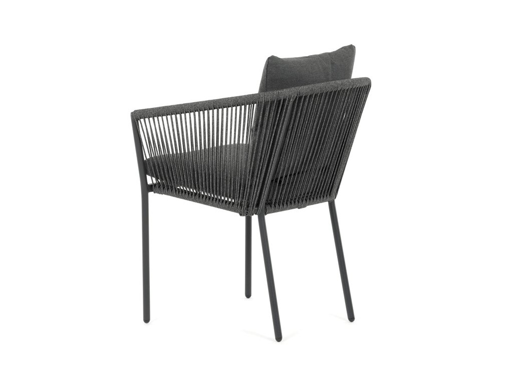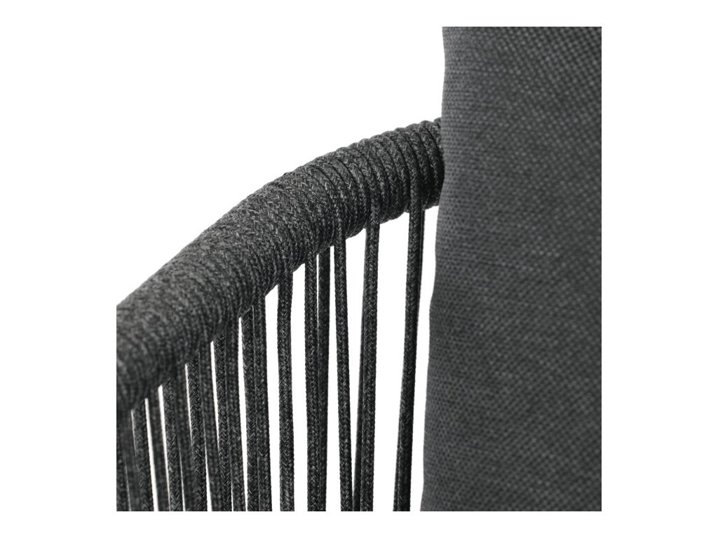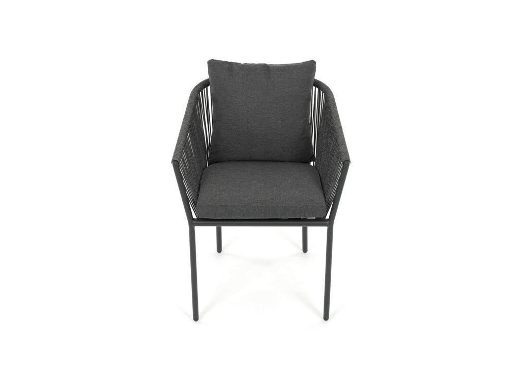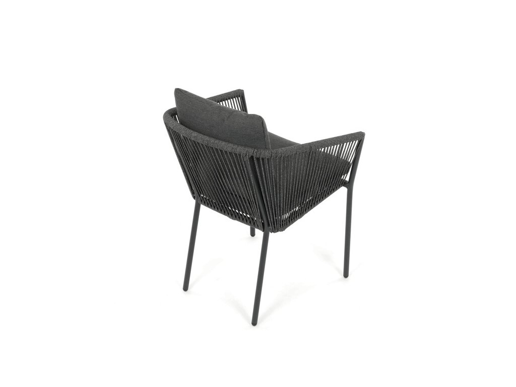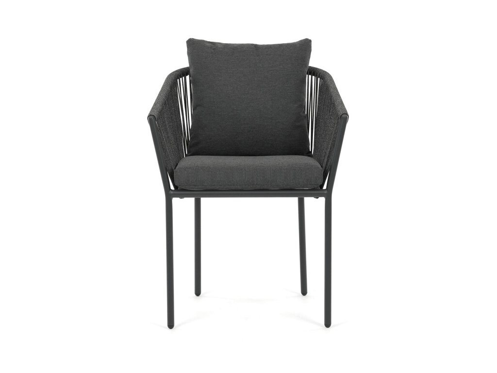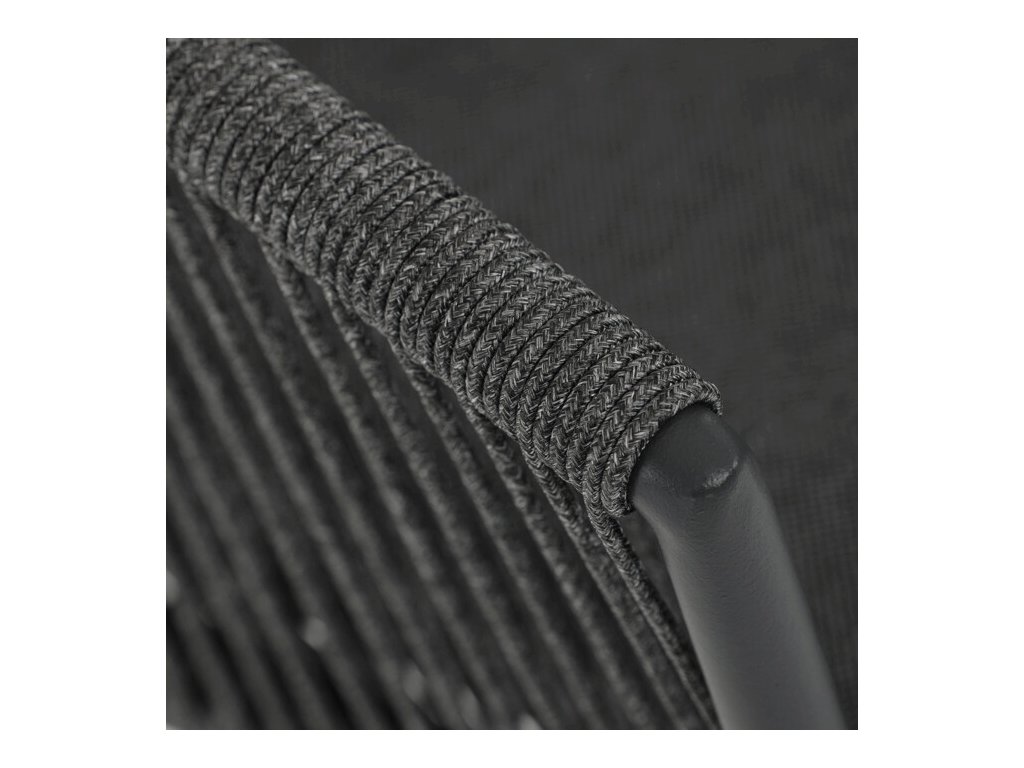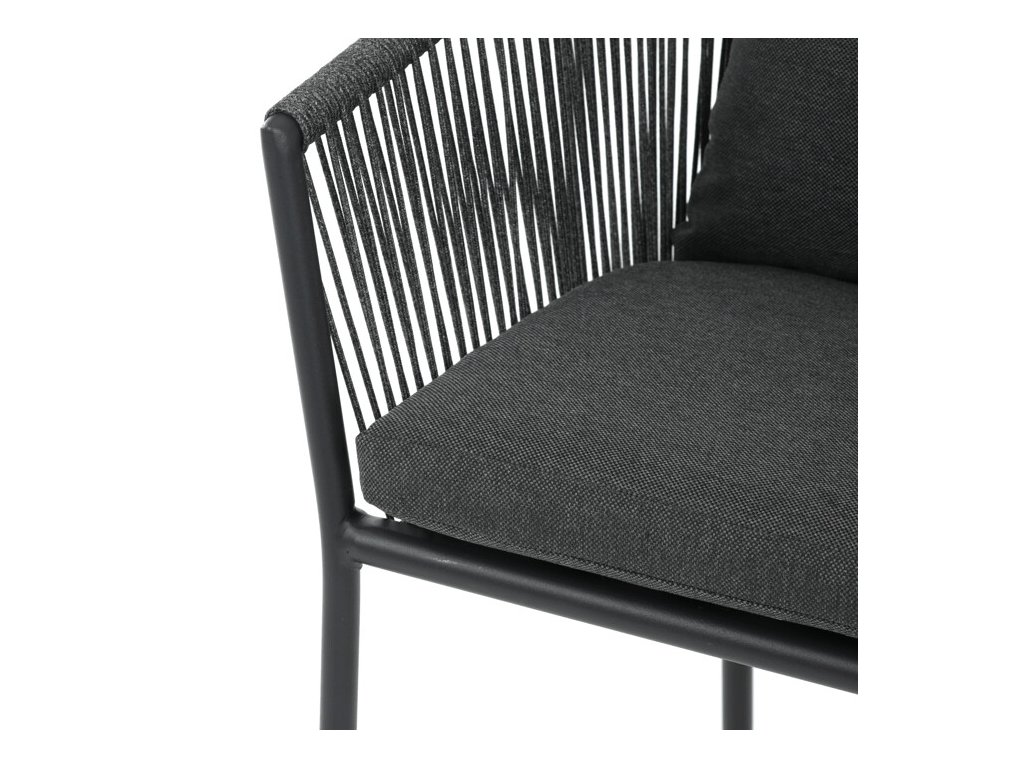 Sedák i opěradlo jsou čalouněné rychleschnoucí šedou látkou, která je voděodolná a snadno se udržuje. Moderní design doplňuje opletení z odolných vláken, jež přispívá k pevnosti konstrukce a zároveň dodává židli vizuální lehkost.