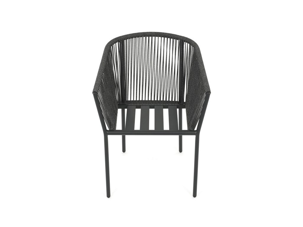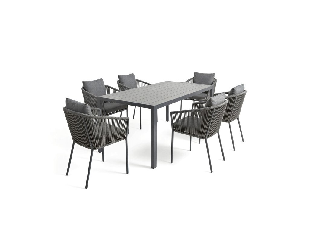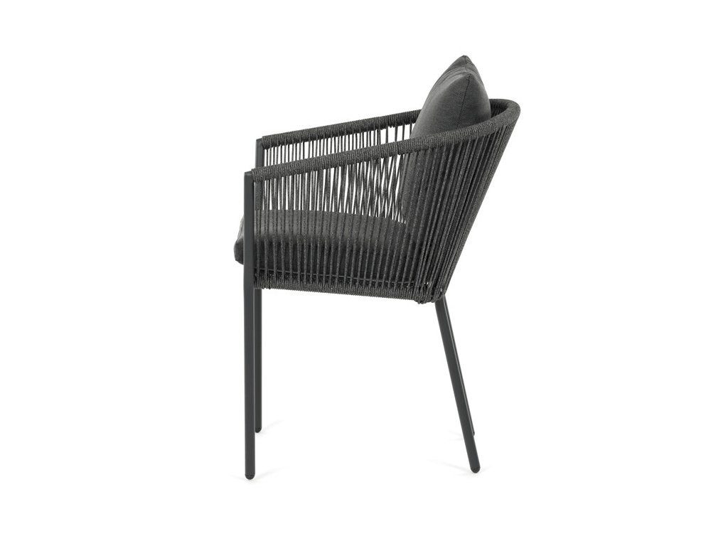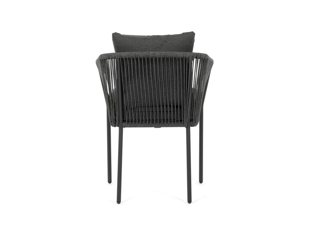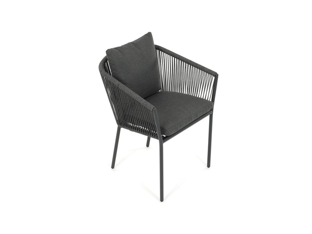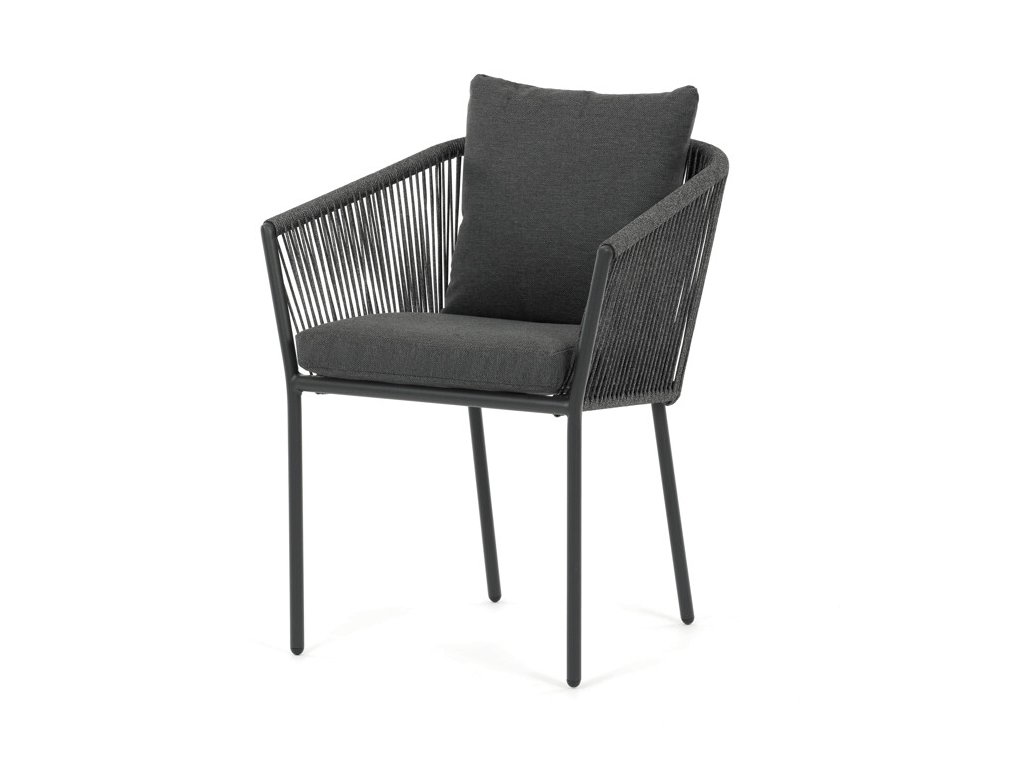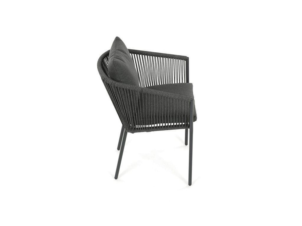 Sedák i opěradlo jsou čalouněné rychleschnoucí šedou látkou, která je voděodolná a snadno se udržuje. Moderní design doplňuje opletení z odolných vláken, jež přispívá k pevnosti konstrukce a zároveň dodává židli vizuální lehkost.